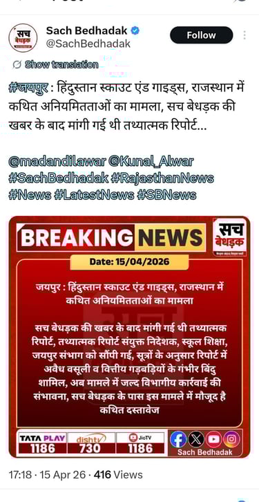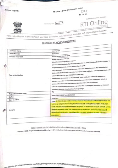 हिंदुस्तान स्काउट्स एण्ड गाइडस राजस्थान राज्य है फर्जी ओर गैर कानूनी कार्य करने वाली संस्था