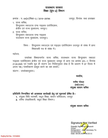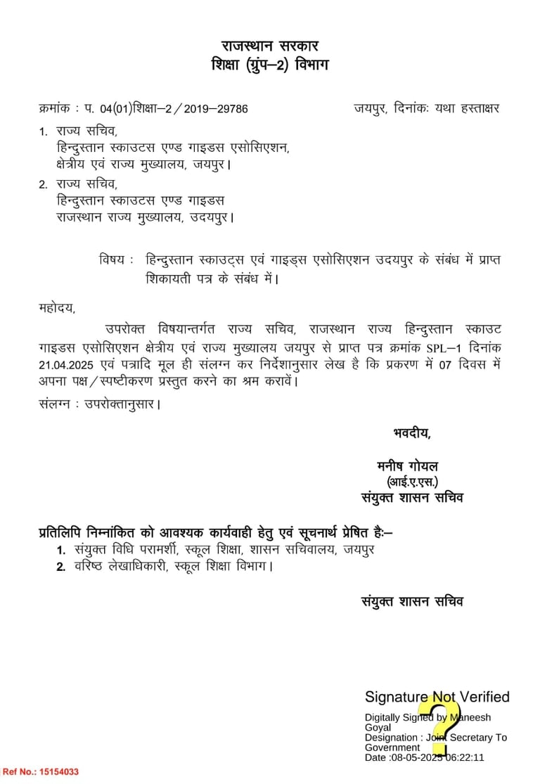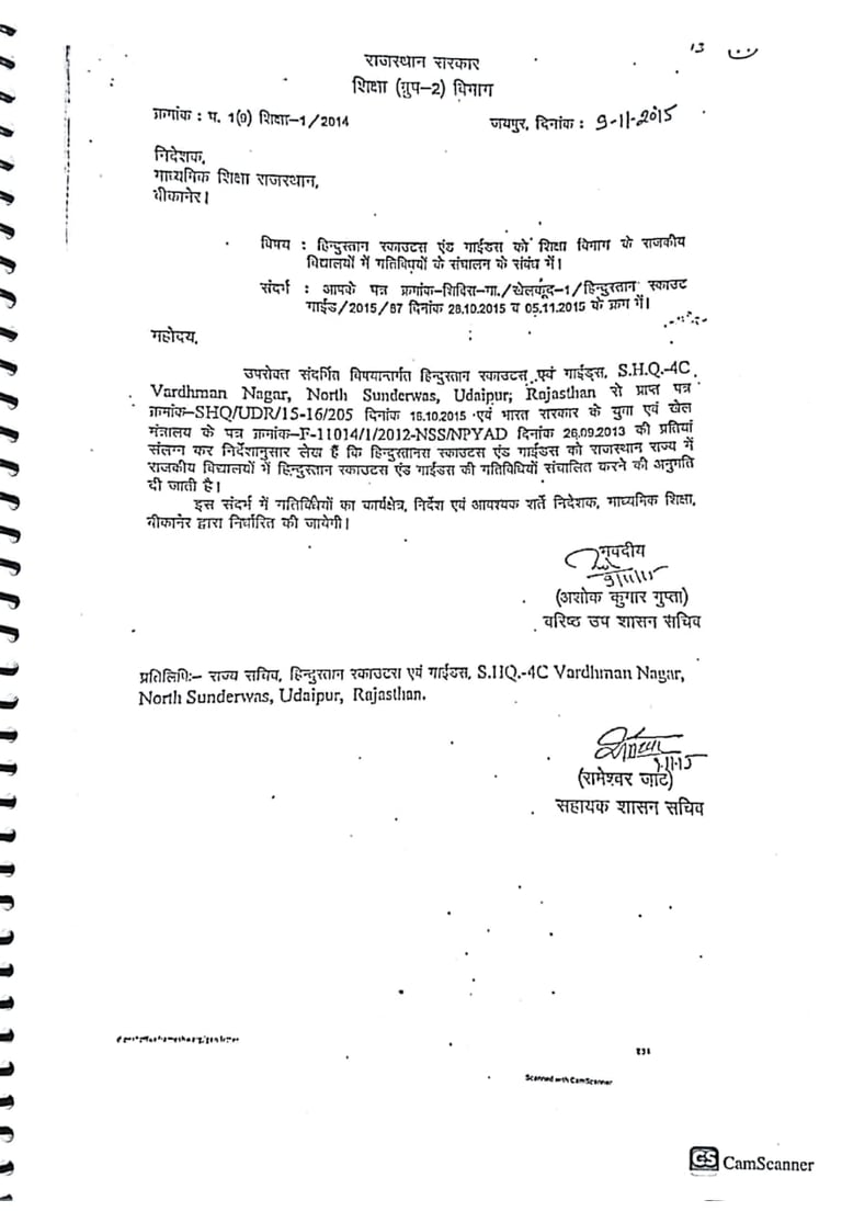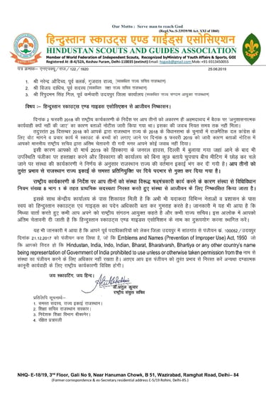 हिंदुस्तान स्काउट्स एंड गाइड्स एसोसिएशन की राज्य राजस्थान राज्य हिन्दुस्तान स्काउट्स एंड गाइड्स एक पंजीकृत और मान्यता प्राप्त संस्था है राजस्थान हाई कोर्ट जोधपुर